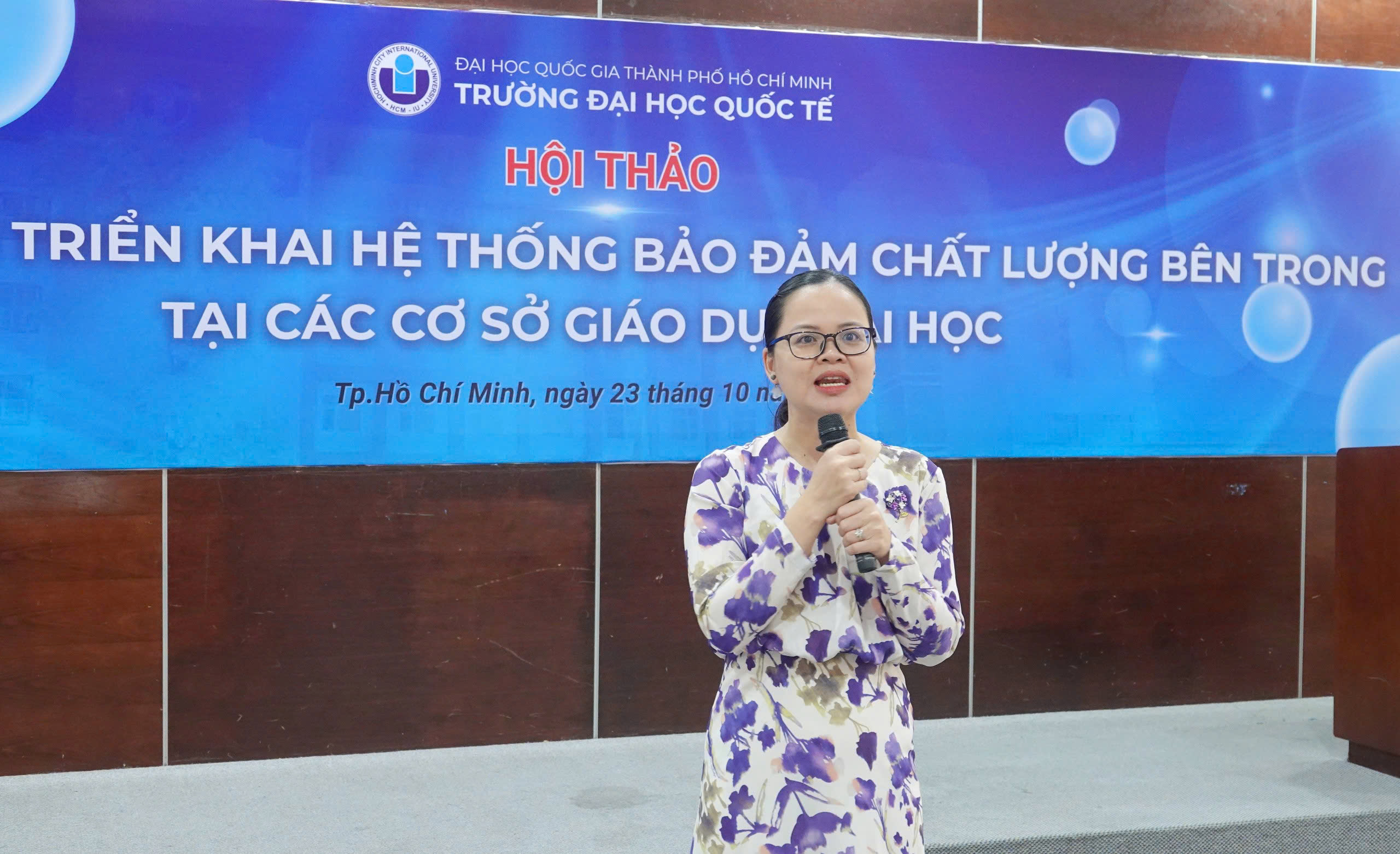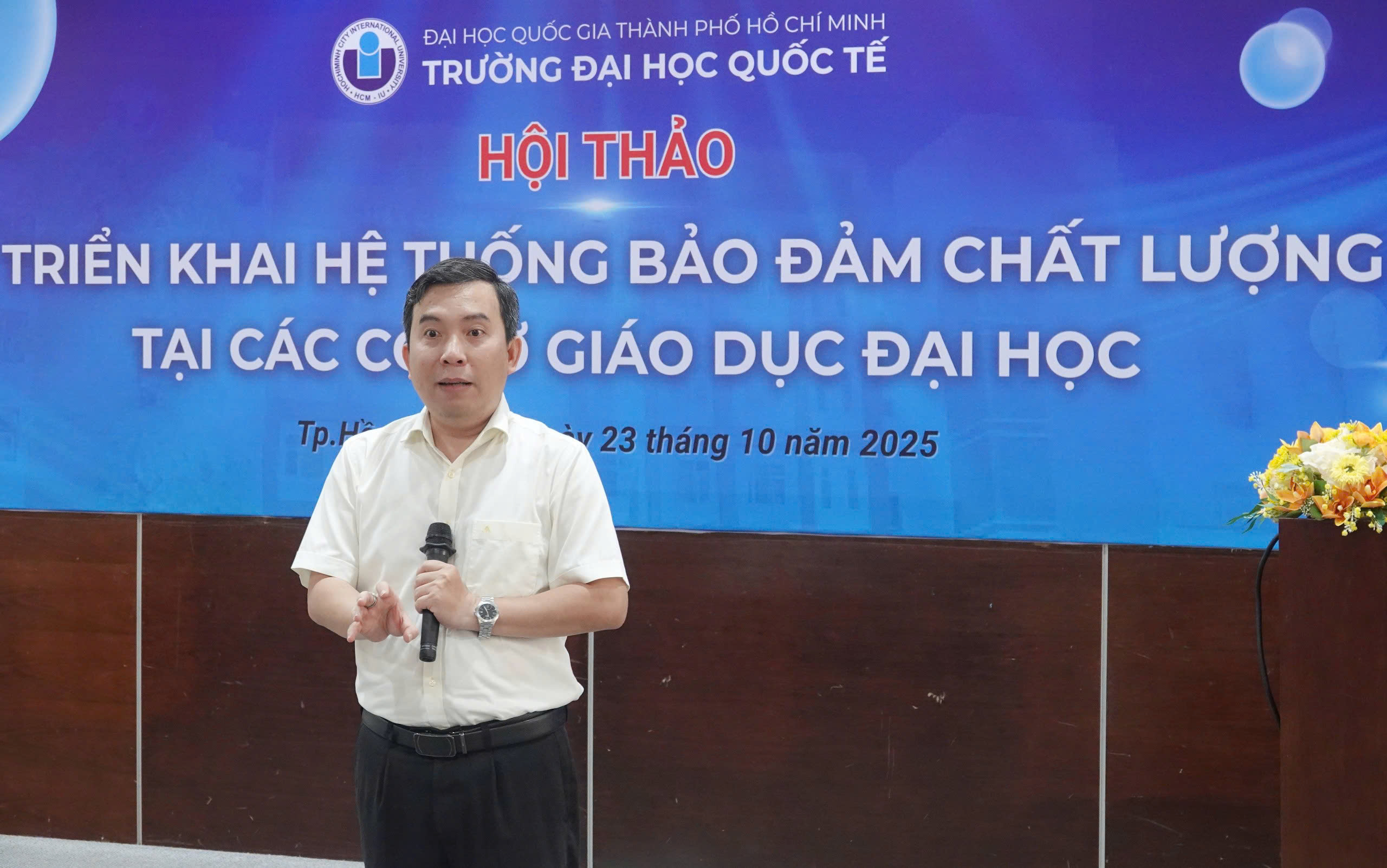 Nhằm nâng cao năng lực chuyên môn, cập nhật kiến thức và kinh nghiệm thực tiễn cho đội ngũ cán bộ, giảng viên, chuyên viên, đồng thời tạo diễn đàn trao đổi, học hỏi và chia sẻ kinh nghiệm trong lĩnh vực bảo đảm chất lượng giáo dục, sáng ngày 23/10/2025, Trường Đại học Quốc tế, Đại học Quốc gia Thành phố Hồ Chí Minh (ĐHQT – ĐHQG-HCM) đã tổ chức Hội thảo “Kinh nghiệm triển khai hệ thống bảo đảm chất lượng bên trong tại các cơ sở giáo dục đại học”.